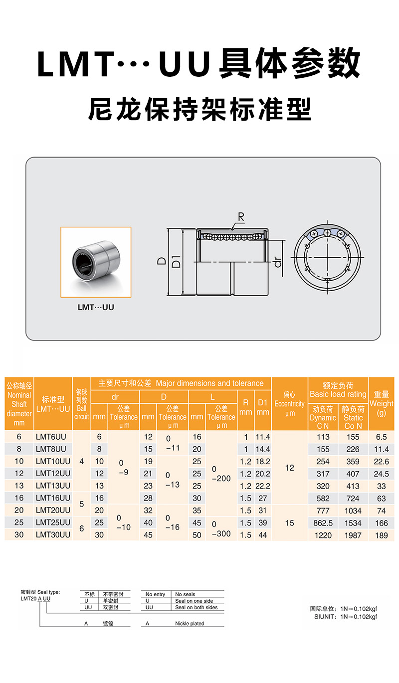 MYT美亞特短型直線軸承,LMT...UU系列,尼龍保持架,該類型尺寸是公制的,廣泛應用于亞洲和其它國家。