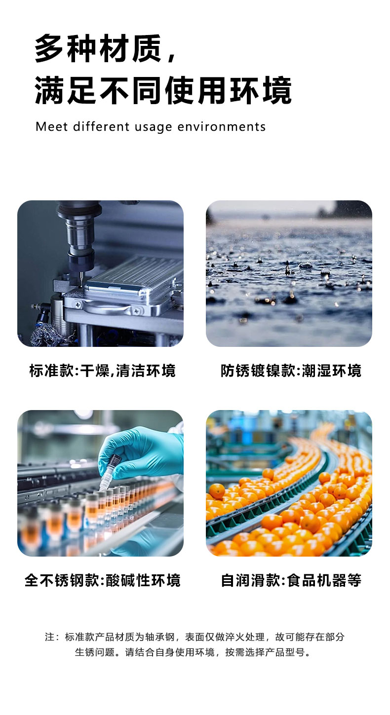 滾珠材質 軸承鋼Gcr15 保持器材質 尼龍PA66 密封 無/有