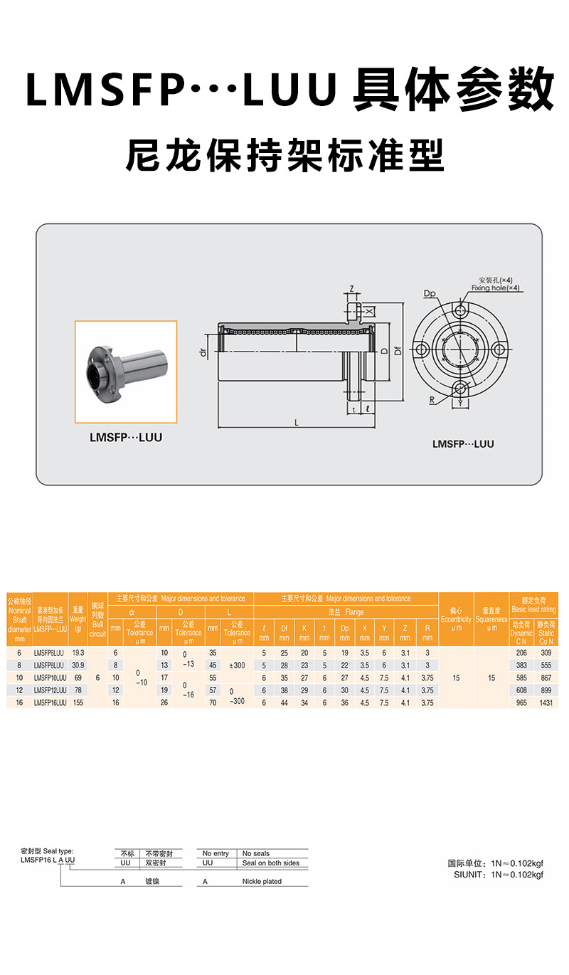 LMSFP···LUU尼龍保持架,該類型尺寸是公制的,廣泛應用于亞洲和其它國家。