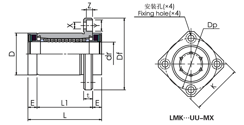 帶潤滑裝置 方法蘭 LMK···UU-MX