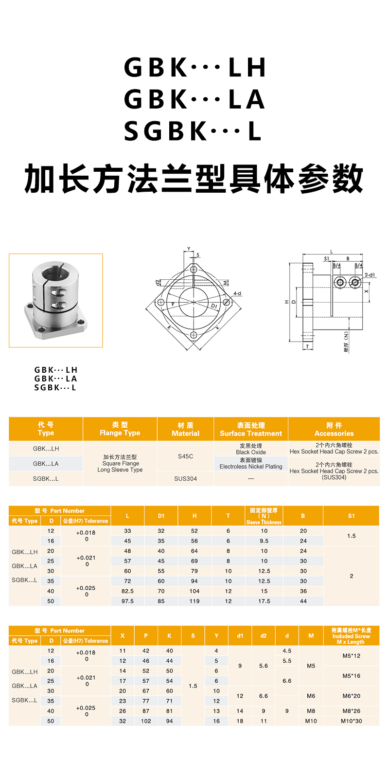 MYT美亞特 導向軸支座 支架 開口加長型 方法蘭 GBK···L