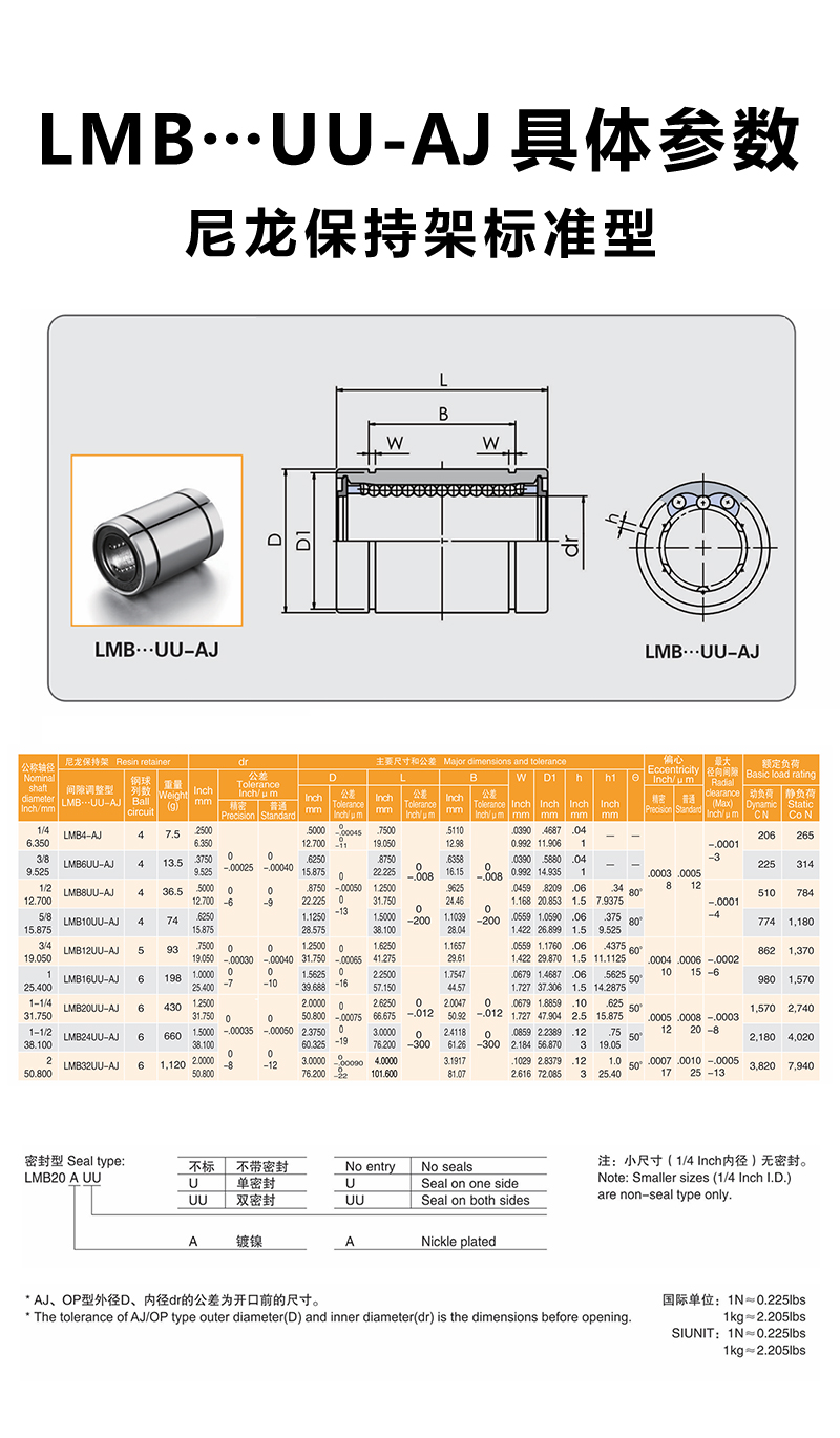 MYT直線軸承 英制 間隙調(diào)整型 LMB···UU-AJ
