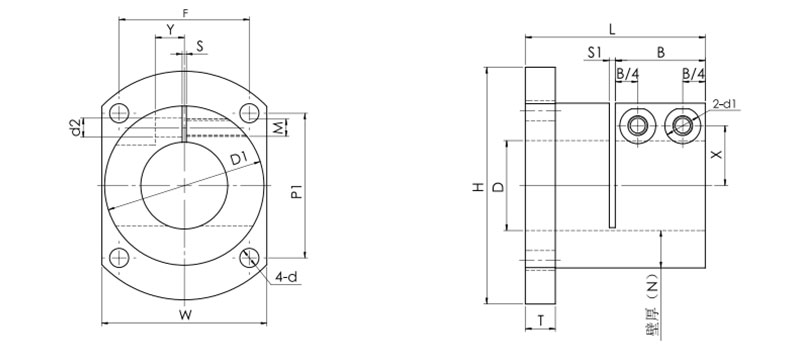 固定部壁厚(N) 10 B(mm) 20 S1(mm) 1.5