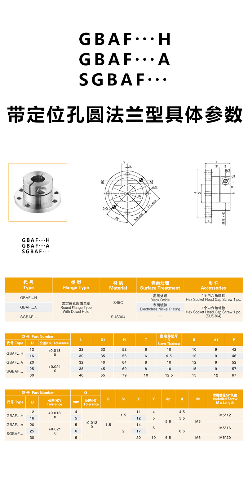 MYT美亞特 導向軸支座 支架 帶定位孔型 圓法蘭 GBAF