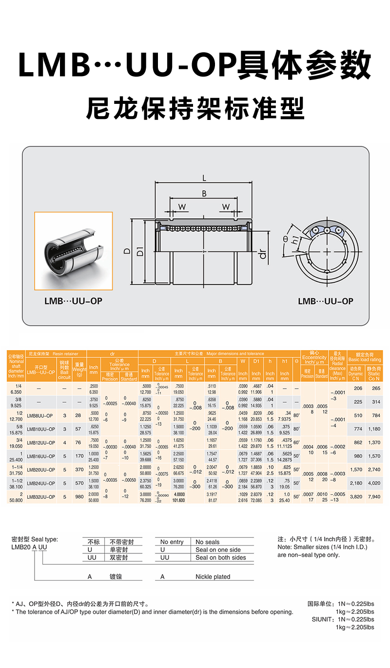 MYT直線軸承 英制 開口型 LMB···UU-OP