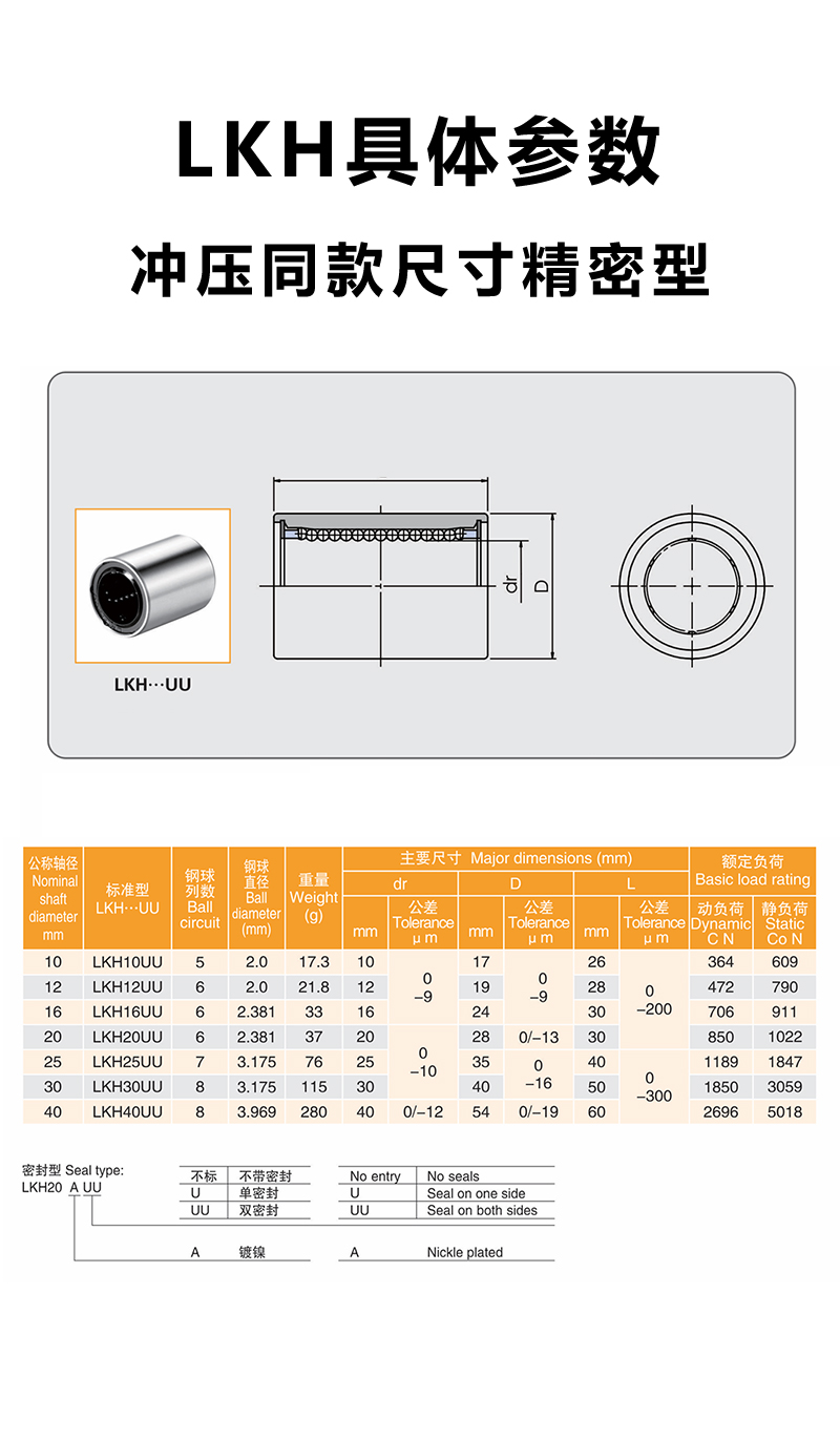 MYT直線軸承 沖壓同款尺寸精密型 LKH···UU