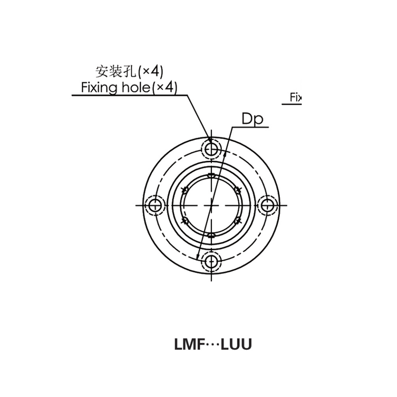 ●MYT法蘭型直線軸承外圓上有一個垂直的安裝平臺,故安裝時不需軸承座,從而大大地降低了成本。