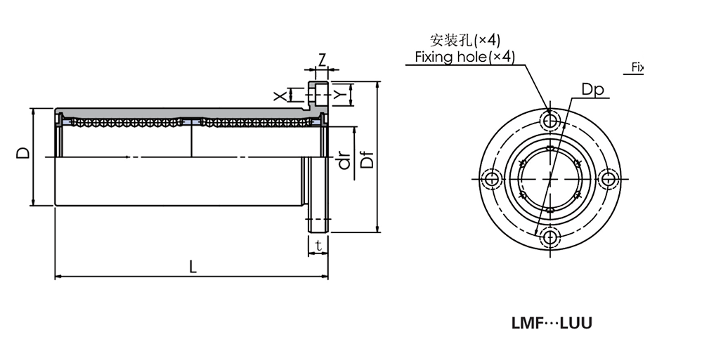 MYT直線軸承 加長圓法蘭 LMF···LUU