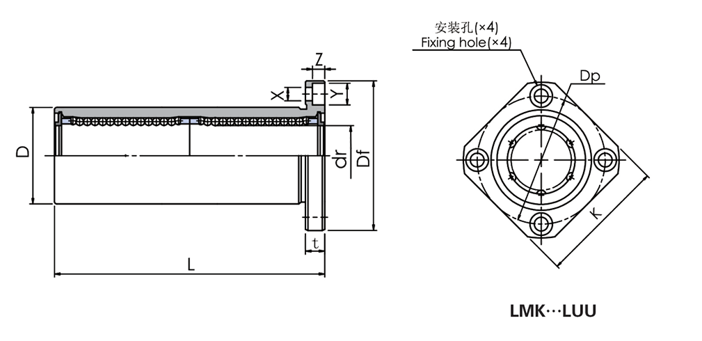 MYT直線軸承 加長方法蘭 LMK···LUU