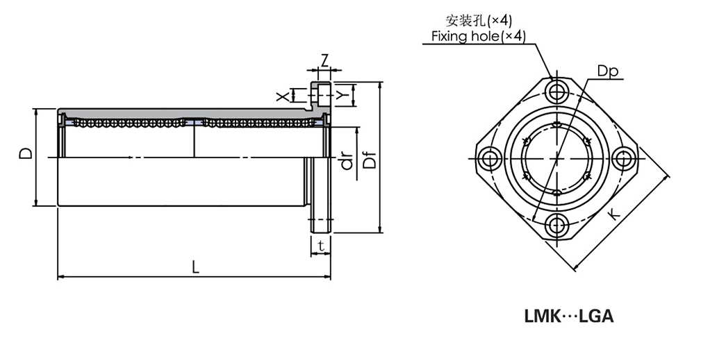 MYT鋼保直線軸承 加長方法蘭 LMK···LGA