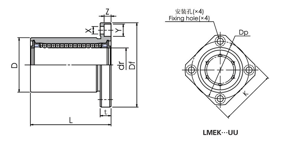 MYT直線軸承 歐標 方法蘭 LMEK···UU