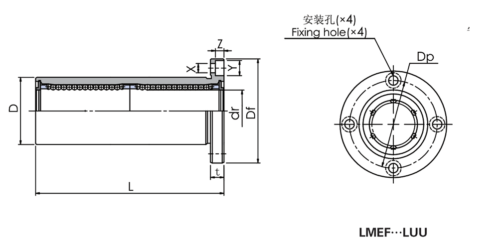 MYT直線軸承 歐標 加長圓法蘭 LMEF···LUU