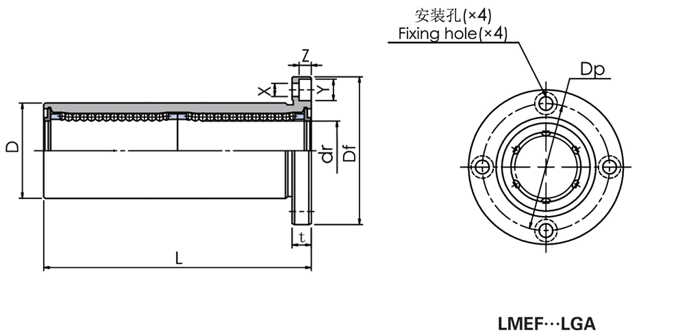 MYT鋼保直線軸承 歐標 加長圓法蘭 LMEF···LGA