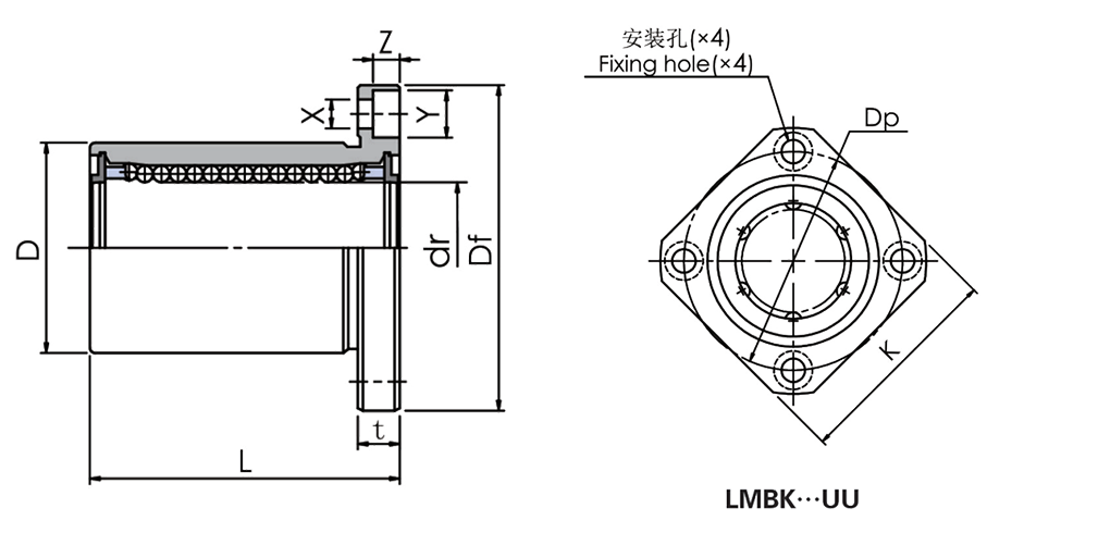 MYT直線軸承 英制 方法蘭 LMBK···UU