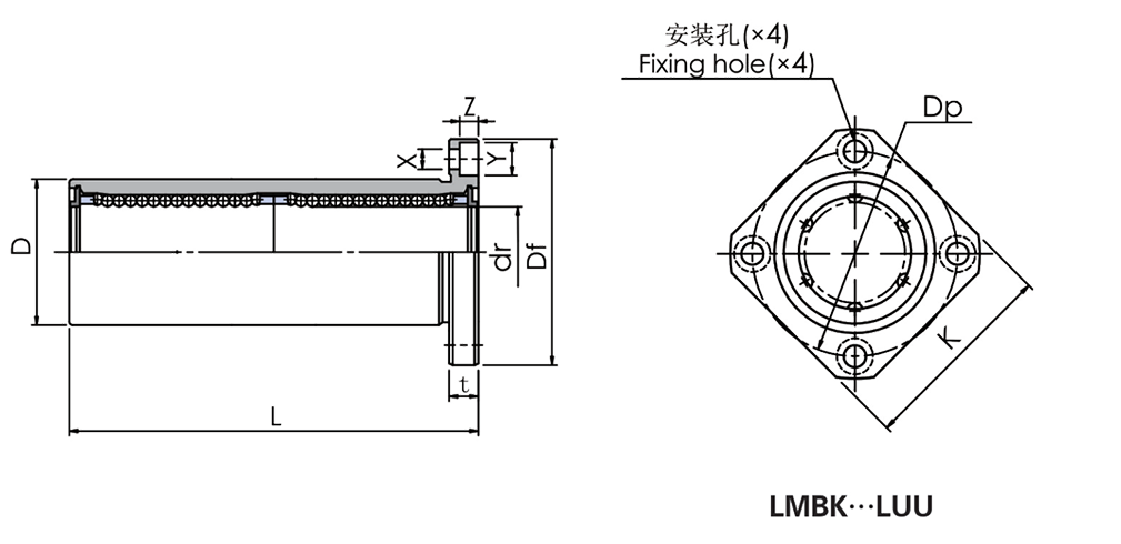 MYT直線軸承 英制 加長方法蘭 LMBK···LUU