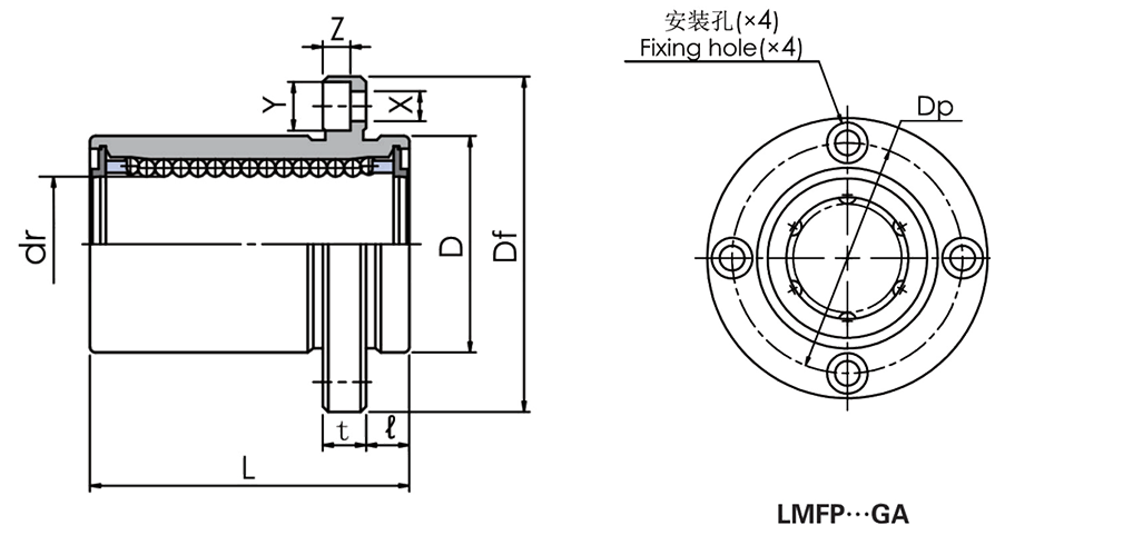 MYT鋼保直線軸承 導向圓法蘭 LMFP···GA