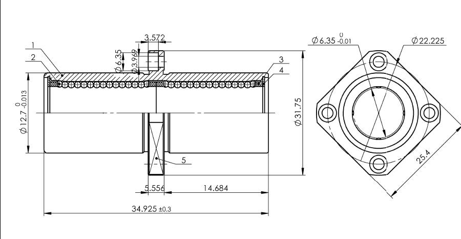 ●MYT法蘭型直線軸承外圓上有一個垂直的安裝平臺,故安裝時不需軸承座,從而大大地降低了成本。